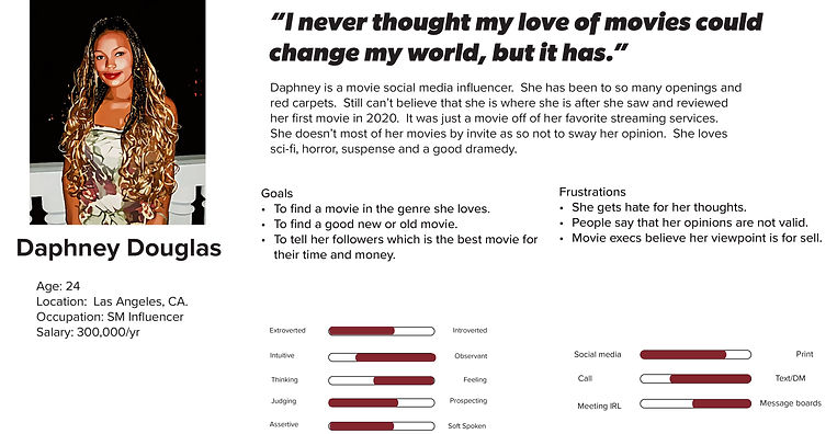 This app caters to many users/personas as movies are enjoyed by many people. With this project I chose to focus on location and genre as the reason to user the app.